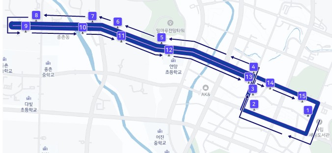 | 노선 | 덕산읍출장소 ~ 한국건설생활환경 시험연구소 |